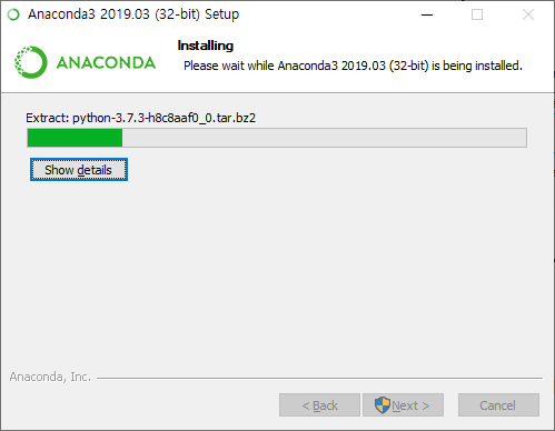 - Anaconda 32bit 설치 (파일 : Anaconda3-2019.03-Windows-x86.exe)