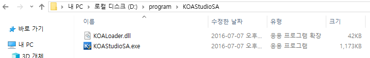 KOAStudioSA.exe 파일을 실행하면 끝!!