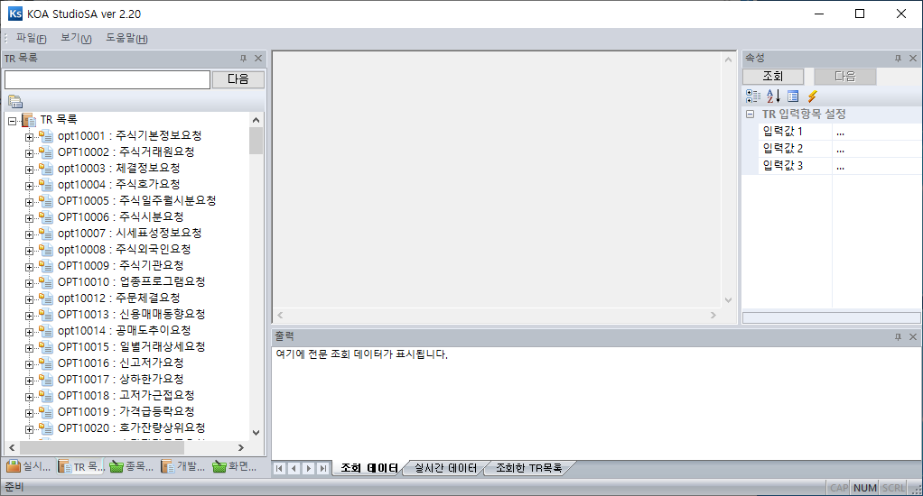 정상적으로 KOA Studio 가 실행되었고, 키움 Login 도 잘 처리되었다. 자 이제 드디어 Open API 를 테스트해보자.
