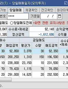 반응형 Open API2 180720 키움 open api 자동매매결과 현재 개발하고 있는 자동매매 프로그램을 이용한 첫번째 매매결과를 기록한다. 기능상의 문제가 없는지 확인하는 것이 주 목적이라 매매전략은 매우 보완할 점이 많다. 매매전략매수 signal키움증권에 등록한 5개의 단타용 조건검색식을 매수 signal 로 활용하고, 매수 signal 발생한 종목을 10주 시장가 매수한다. 예수금이 10만원 미만이면 추가로 매수하지 않는다. 매도 signal매 30초마다 보유하고 있는 종목을 모니터링해서 매도조건(3%(익절), -2%(손절))에 해당하는 종목을 일괄 시장가 매도 처리한다. 매매결과2018년 7월 18일(금) 첫 자동매매결과는 다음과 같다. 매매요약총 581번 매매(매수/매도)하고, 39개의 종목을 거래하여 최종 169,013원 잃었다 -_-.. 매매한 종목들은 .. 2018. 7. 20. 키움 open api 이용해서 자동매매 구현(Basic) 오늘은 키움증권의 open api를 이용하여 자동매매하는 틀을 만들예정이다. 키움증권 HTS에 등록한 조건검색식에서 검출되는 종목을 실시간으로 모니터링하고, 해당 종목을 매수한다. 매수 후에 -2%는 손절가, +3%는 익절가로 설정하여 자동으로 매도하도록 한다. 트레이딩 관련한 모든 정보는 DB에 저장되어 장 종료 후 트레이딩 분석자료로 활용한다. 자동매매 구현을 위한 TopTrader 클래스를 다음과 같이 정의한다.class TopTrader(QMainWindow, ui): def __init__(self): super().__init__() self.tt_logger = TTlog() self.mongo = MongoClient() self.tt_db = self.mongo.TopTrader self.. 2018. 7. 18. 이전 1 다음 반응형